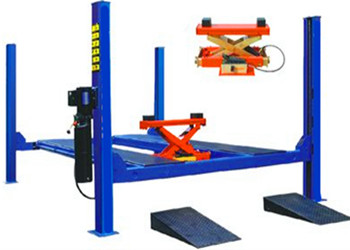 地上式舉升機(jī)無需挖槽,適用于任何修理廠,有一些樓板上不適合安裝二柱舉升機(jī)以及普通四柱舉升機(jī),而本機(jī)器與樓板接觸面廣,這樣可以安裝在任何可以開車的樓板上面,解決客戶場地問題。剪式舉升機(jī)比兩柱和四柱舉升機(jī)極大的好處是不占用空間,方便使用,不足之處則是補(bǔ)油平衡要求很嚴(yán)格,而且需配備控制箱,造價較貴。