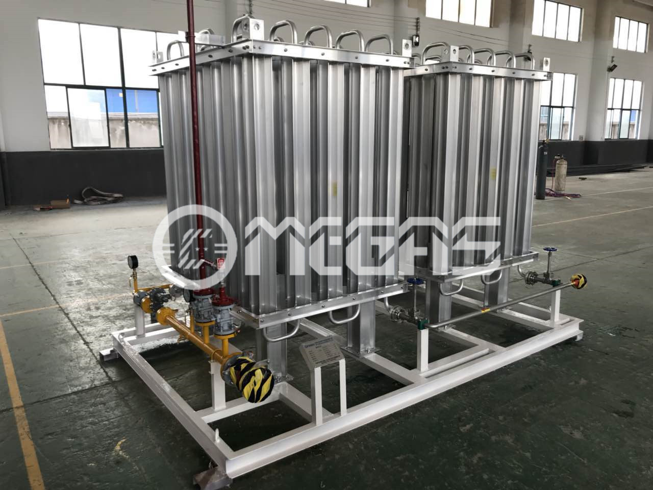 1.原理:因客戶現(xiàn)場條件或投資成本因素受限,對卸車增壓部分、儲罐增壓部分以及氣化調(diào)壓部分進行整合優(yōu)化,將三個部分整合在集成基座上實現(xiàn)綜合功能。在有限的空間內(nèi)將增壓設(shè)備、氣化設(shè)備、調(diào)壓設(shè)備、復熱設(shè)備、計量設(shè)備、加臭設(shè)備集中合理布局,達到客戶的使用功能,達到效果。
